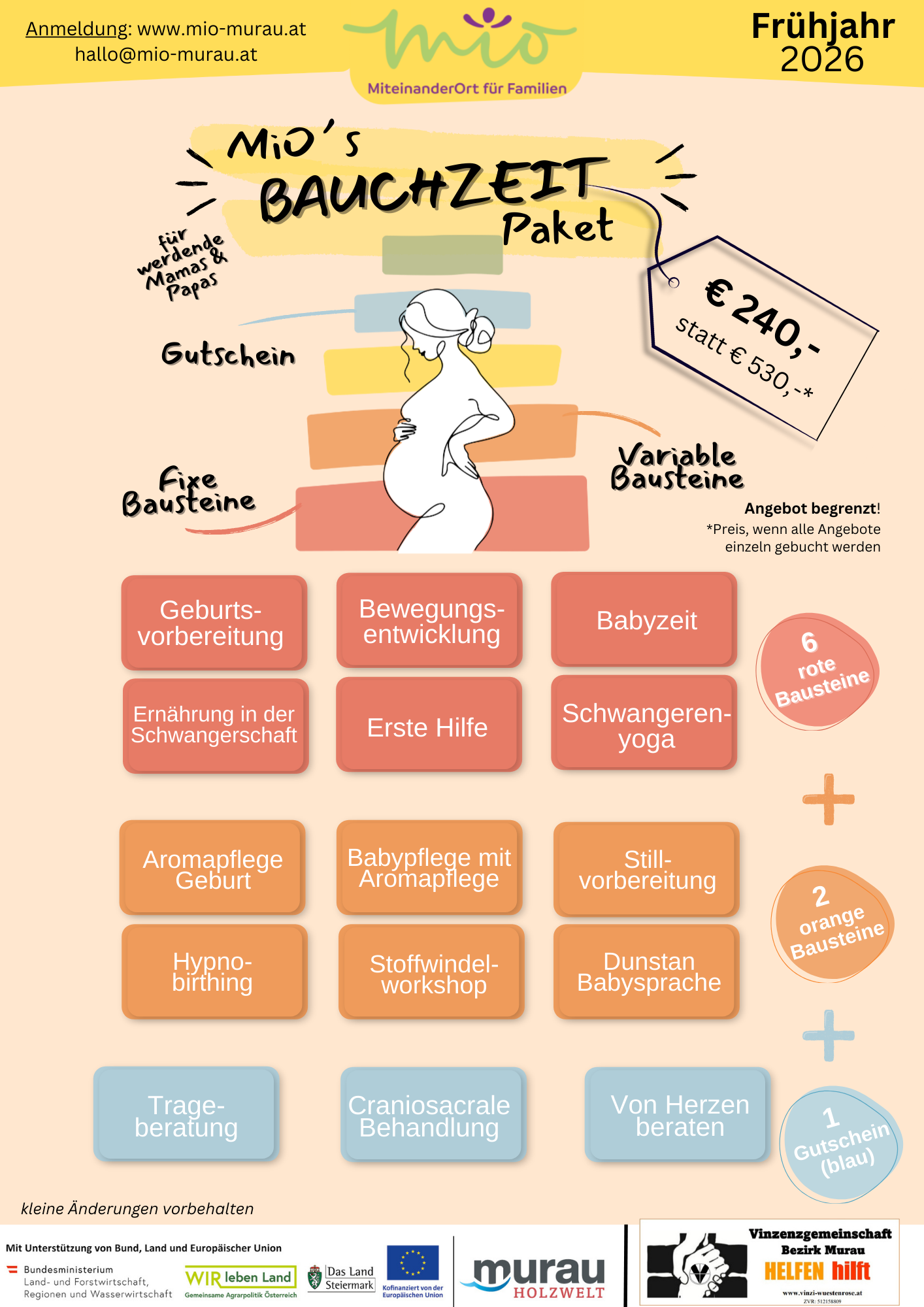 Gegenwart: Es ist erfreulich zu sehen und zu hören, wie das MiO zunehmend zur zentralen Anlaufstelle für Fragen und Anliegen rund um das Familienleben wird. Dies geht über das Angebot im eigenen Haus hinaus, da wir unsere Ziele erweitert haben – insbesondere das Sichtbarmachen der Familienangebote im gesamten Bezirk. Durch diese Maßnahme sind wir zu einem Leader-Projekt geworden. Die Vernetzung mit einigen Vereinen und Institutionen trägt bereits Früchte, denn gemeinsam streben wir danach, die Region Murau für Familien noch attraktiver und lebenswerter zu gestalten.